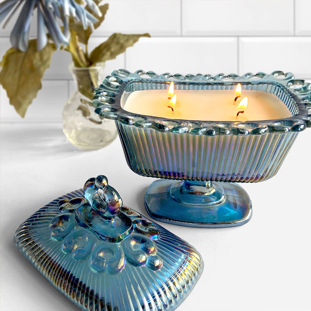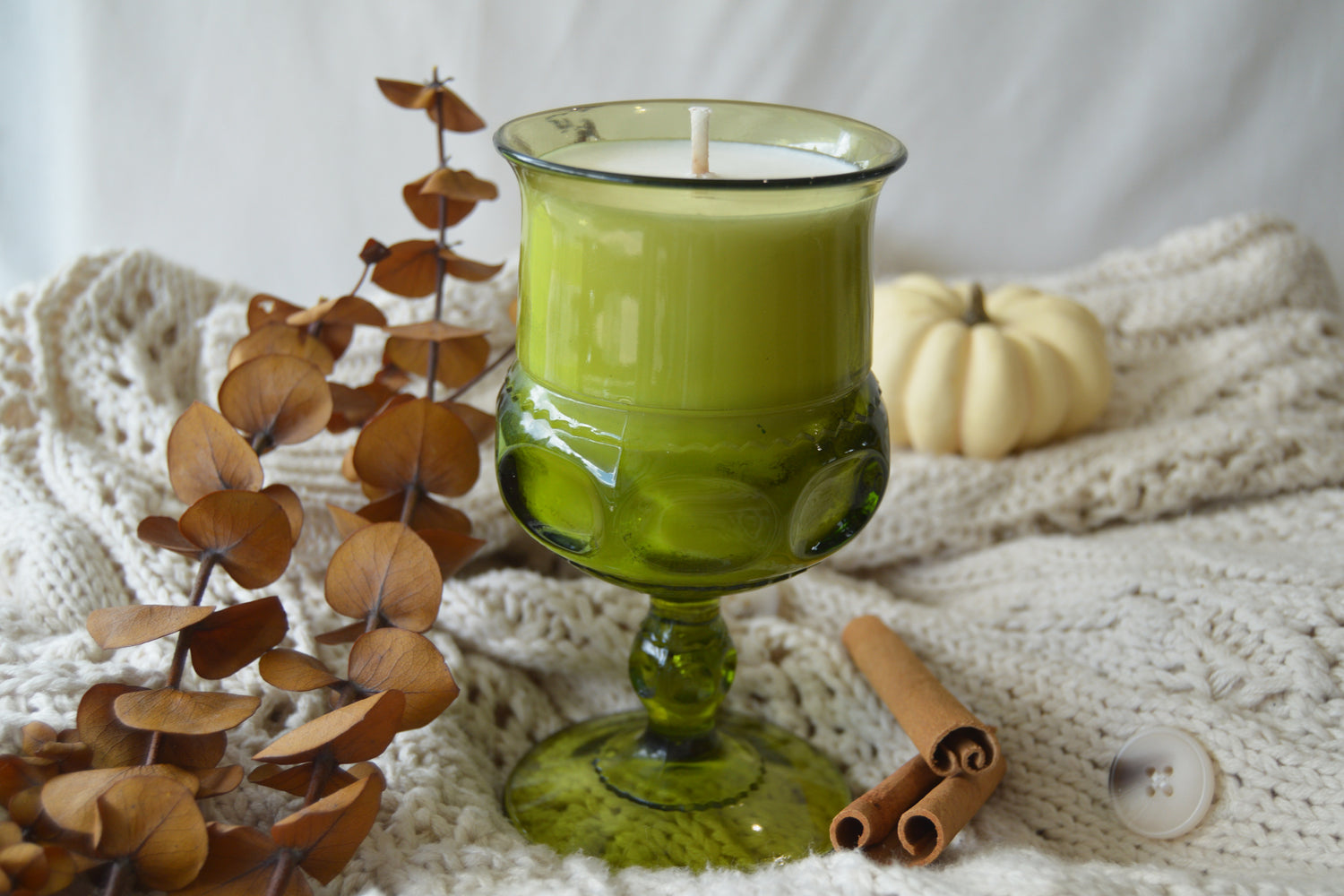 Our candle collection features vintage and up-cycled vessels like decorative glassware, handmade ceramics, and brass items. These unique vessels are given new life to add charm to your home or make a thoughtful gift, all while being eco-conscious and gentle on the planet.