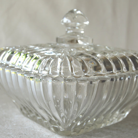Vintage JG Durand Clear Crystal Pedestal Candy Dish with Lid