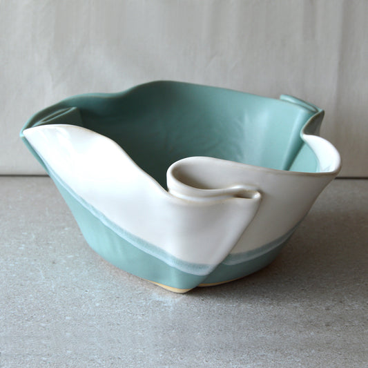 Vintage Hilborn Robin's Egg Ceramic Pinch Pot Large Serving Bowl (Made in Canada)