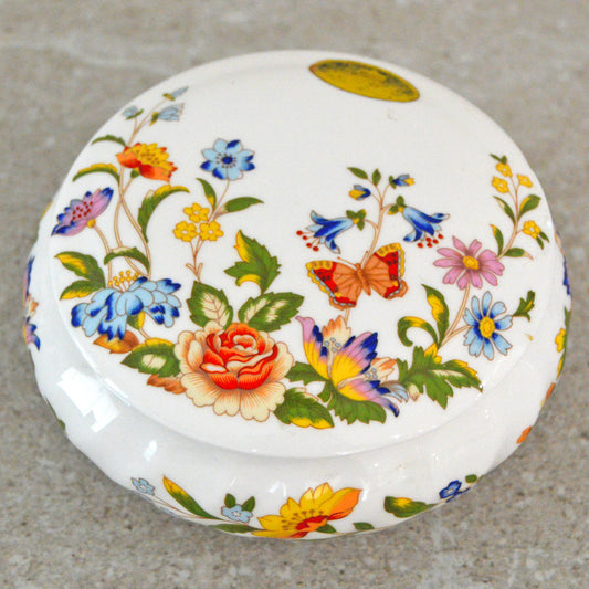 Vintage Bone China Aynsley Cottage Garden Lidded Trinket Box (England, 1970s)