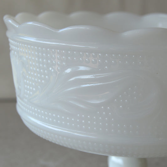 Vintage Milk Glass E.O. Brody Pedestal Bowl (1960s)