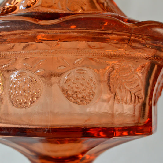 Vintage Tiara Indiana Glass Strawberry Pink Candy Dish with Lid (1970s)