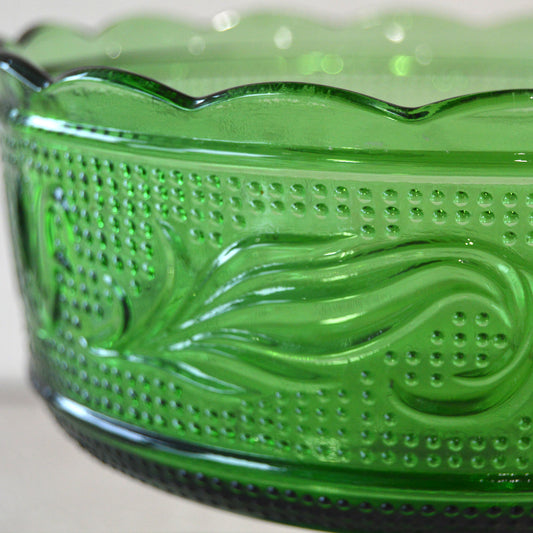 Vintage Green E O Brody Co Pressed Glass Pedestal Bowl (1960s)