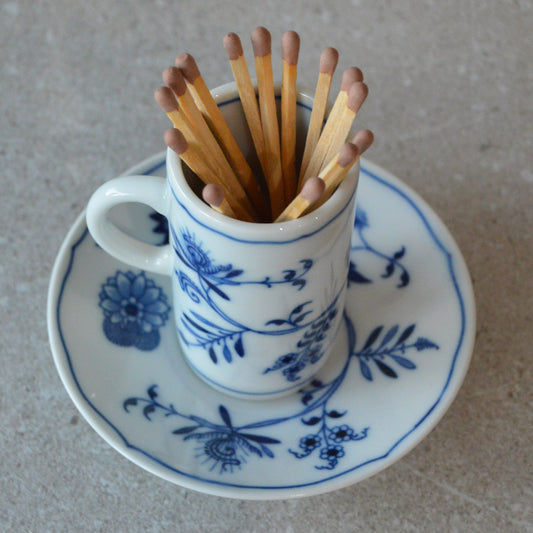 Blue Danube Blue Onion Inrish Coffee Cup and Saucer with Matchsticks and Striker: Matchstick Holder