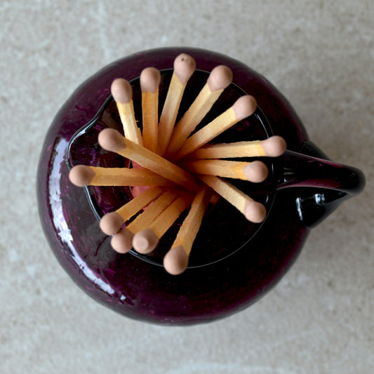 Vintage Amethyst Crackle Style Mini Pitcher with Matchsticks and Striker: Matchstick Holder