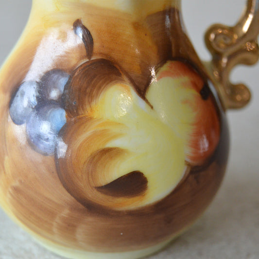 Vintage Enesco Mini Porcelain Pitcher Hand Painted Fruit Gold Trimmed Matchsticks and Striker: Matchstick Holder