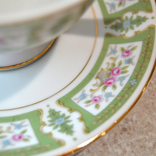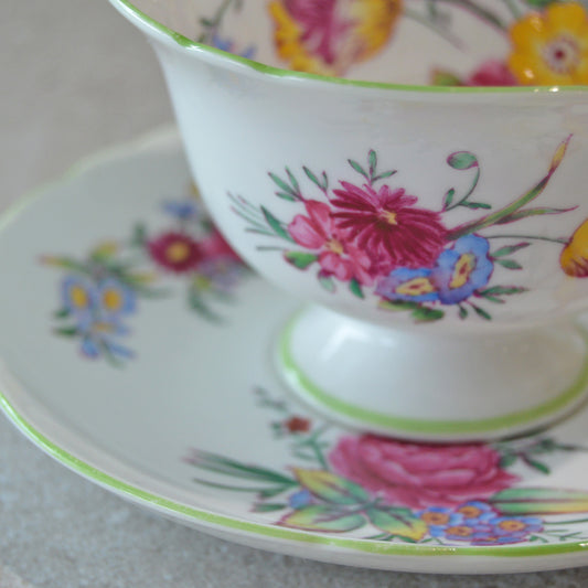 Vintage Shelley Green Floral Teacup & Saucer (1950s)