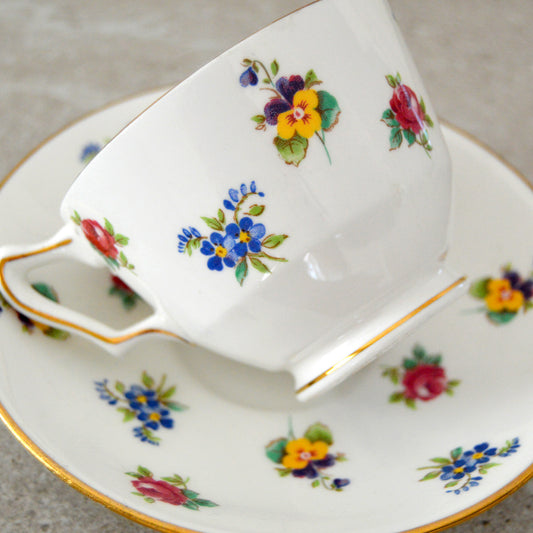Vintage Floral Royal Victoria Teacup with Saucer (1980s)