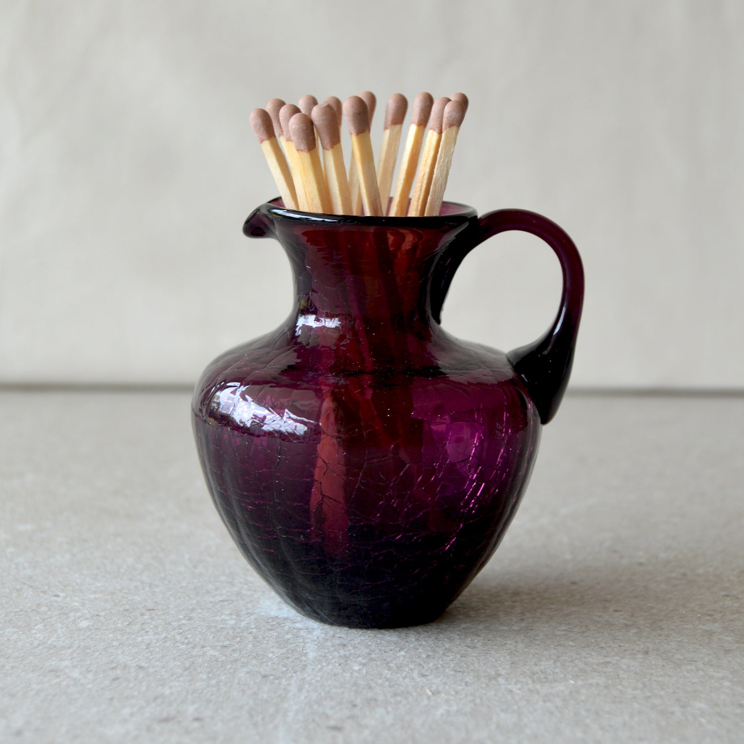 Vintage Amethyst Crackle Style Mini Pitcher with Matchsticks and Striker: Matchstick Holder