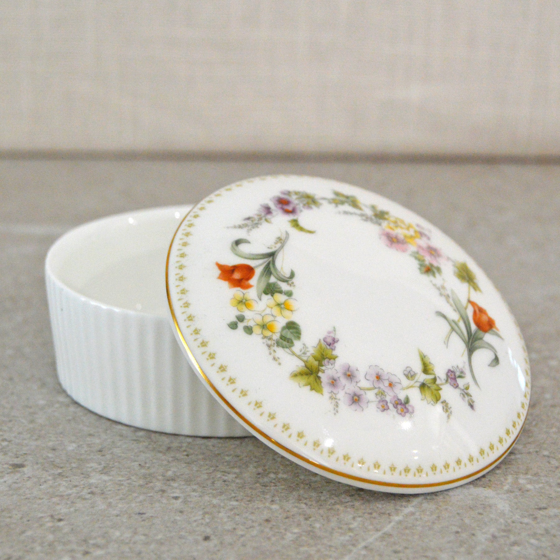 Vintage Bone China Wedgwood Mirabelle Trinket Box (England, 1960s)