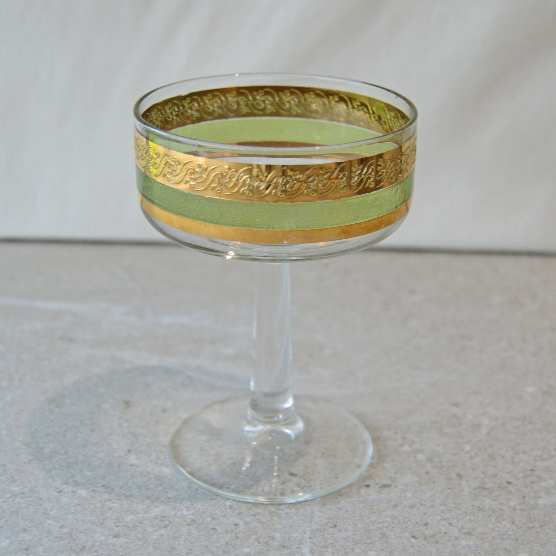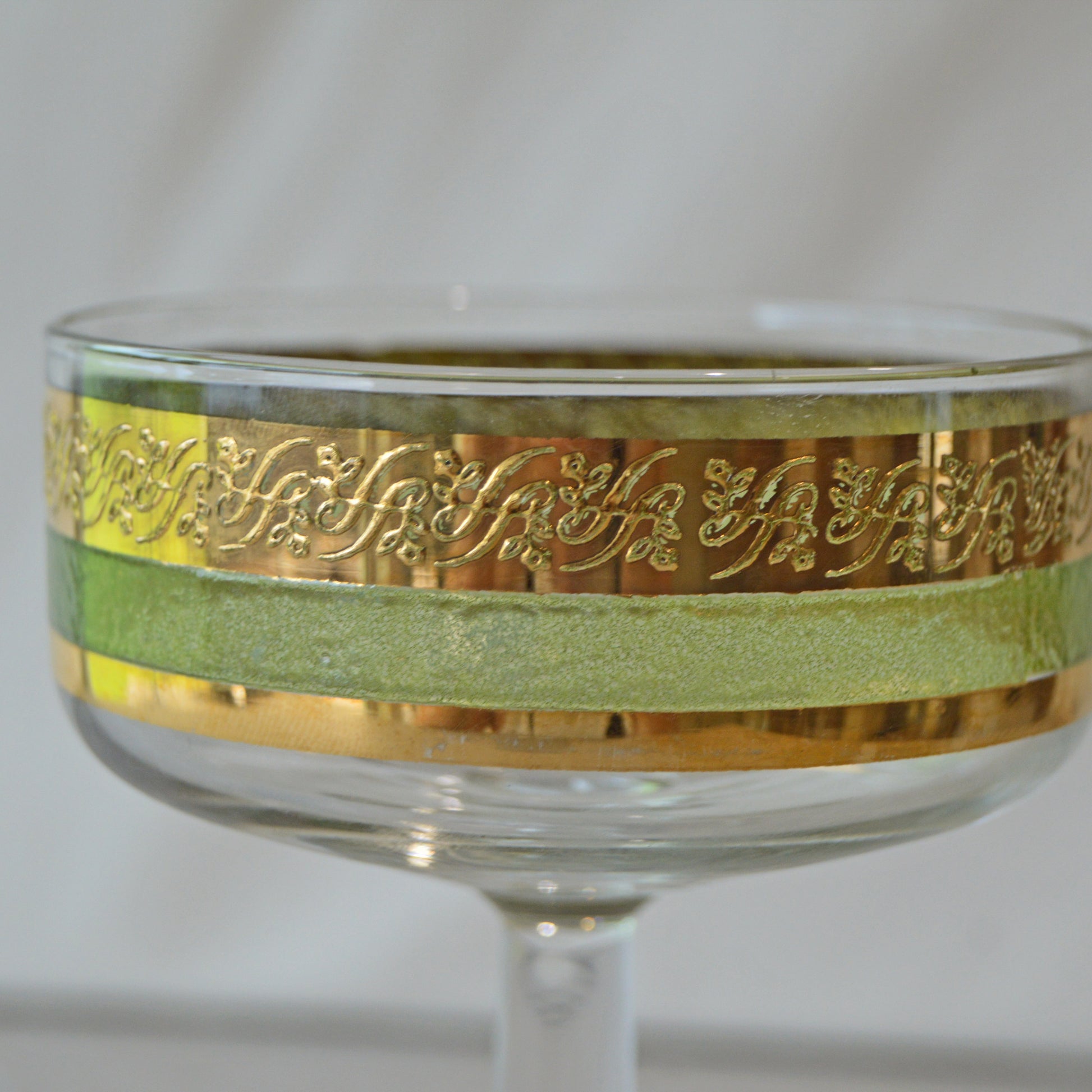 Vintage Starlyte Green & Gold Scroll Coupes, set of 6 (1960s)
